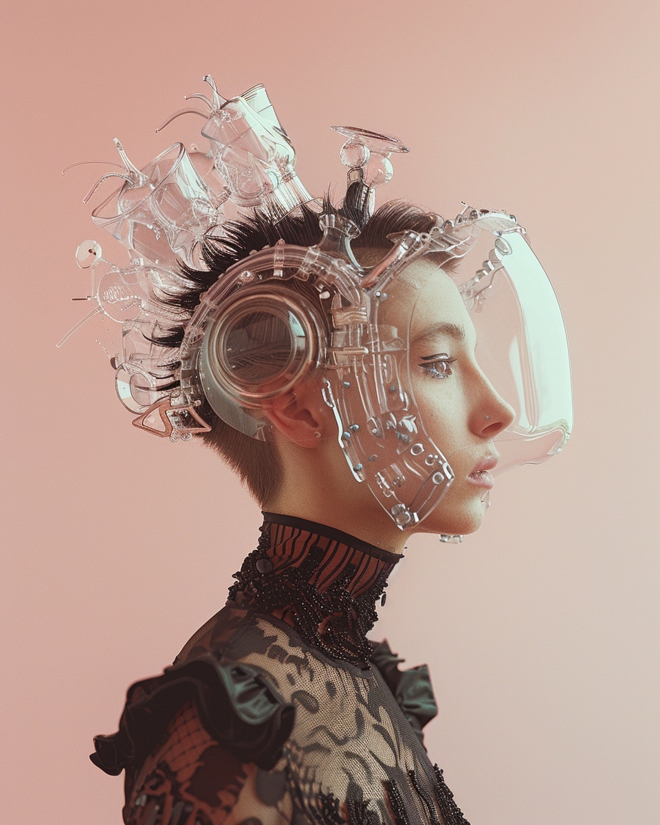 // PROMPT: A sci-fi fashion portrait of a person in futuristic attire